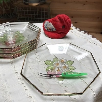 レトロいちごのガラスプレート・亀井硝子