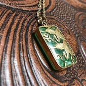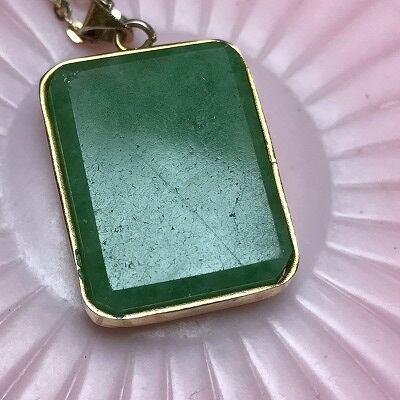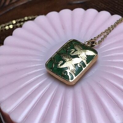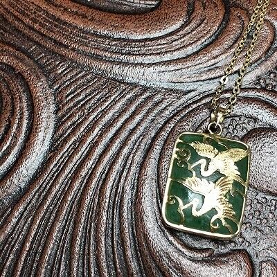 翡翠のような石に鶴の彫刻が美しくクラシカルなネックレスです。